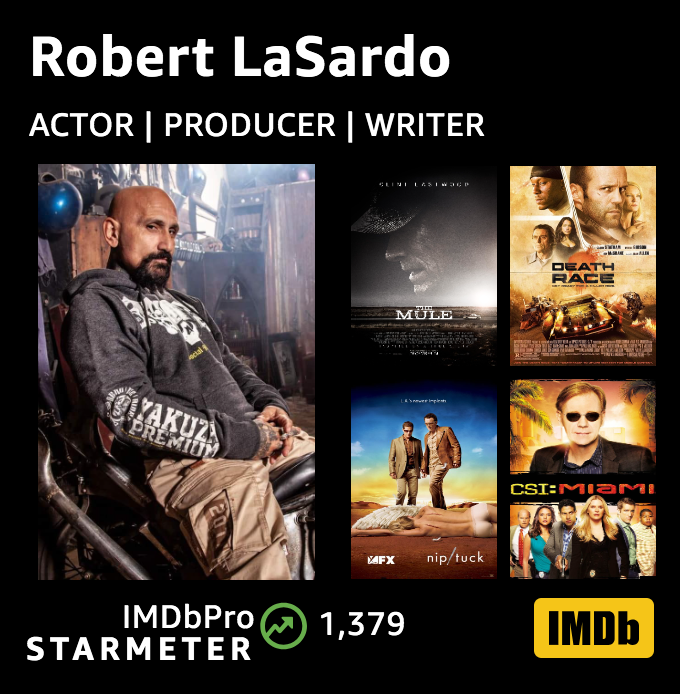 He known for his extensive body tattoos and intense portrayals of villains and antiheroes. A graduate of the High School of Performing Arts and the Stella Adler Studio of Acting, LaSardo served four years in the U.S. Navy. He gained recognition for his role as drug lord Escobar Gallardo on FX's Nip/Tuck and has appeared in films such as Waterworld, The Mule, and The Human Centipede 3, as well as TV series like CSI: Miami and General Hospital .